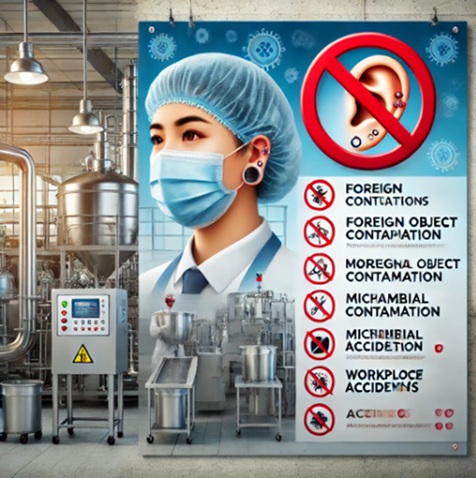 Os riscos do uso de piercing na indústria de alimentos são: 1. Contaminação física – pode cair nos alimentos, tornando-se um corpo estranho. 2. Contaminação